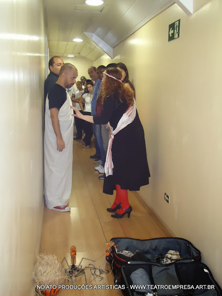 | Nossas intervenções teatrais podem ser apresentadas em pequenos espaços, como corredores |